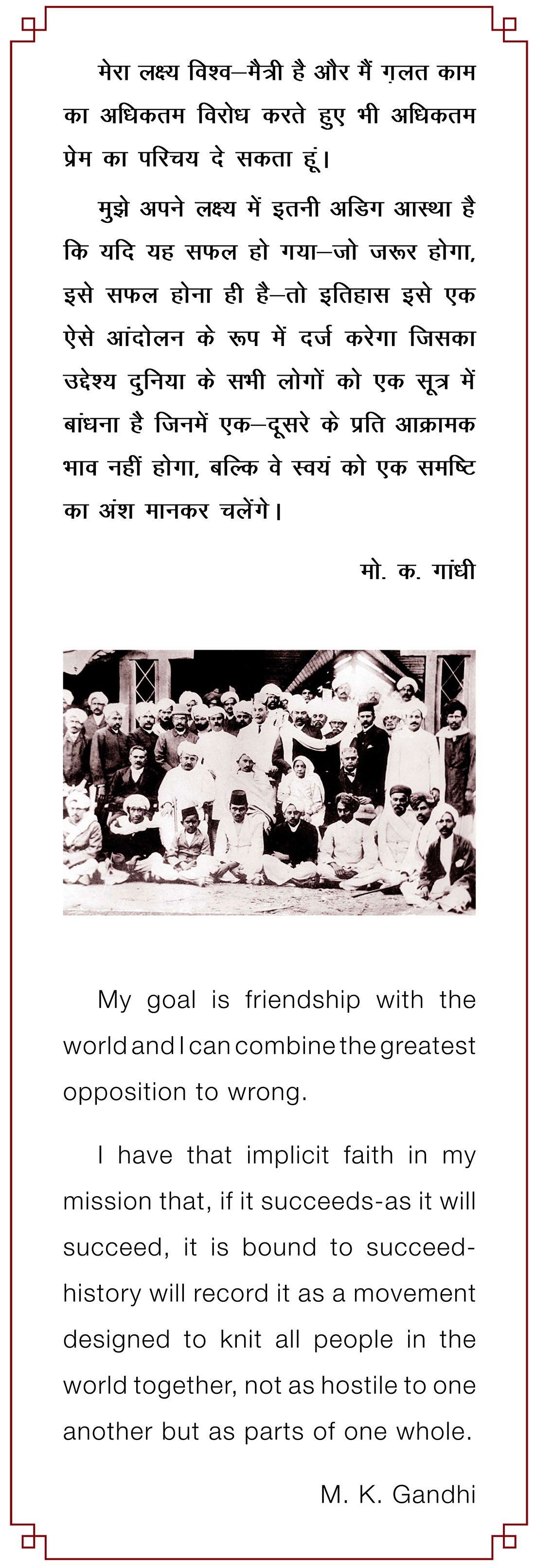 The gallery contains visual representations of Gandhiji’s life and person in various media. In addition it contains audio of his speeches available with the Archives of the SAPMT.
