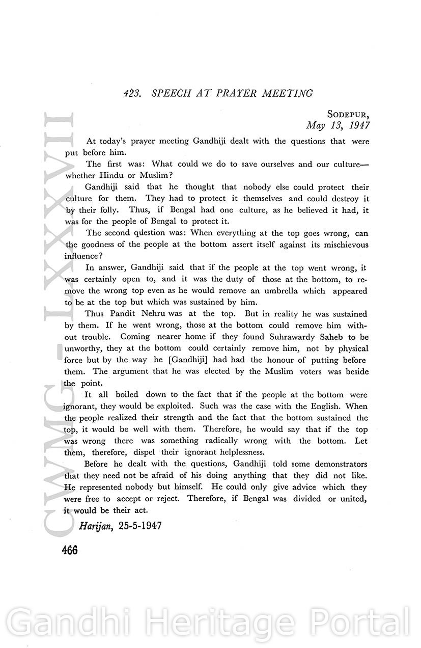 Post Prayer Speech by Mahatma Gandhi on 11-05-1947 at Sodepur (Part - 1)