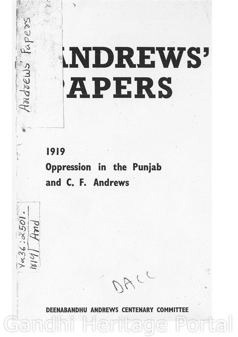 Andrews' Papers 1919 Oppression in the Punjab and C. F. Andrews