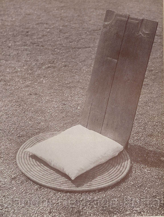 • The empty seat of Mahatma Gandhi at the Sevagram prayer-lawn