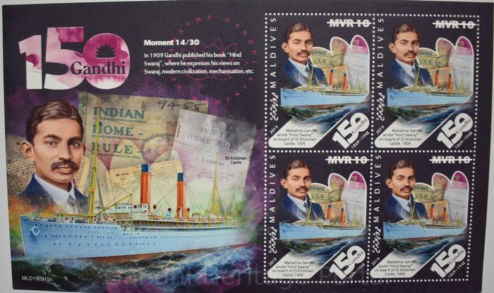 • MVR 10/ MVR10/MVR 10/MVR 10 postage Stamp on 150 Gandhi (1869-1948) by Maldives-2019
