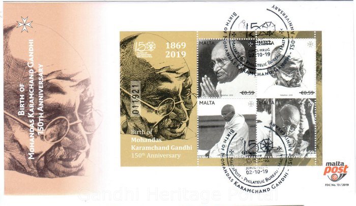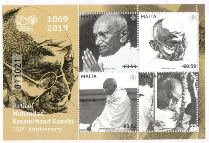 • €0.59/€0.59/€0.59/€0.59 Years of celebrating the Mahatma by Malta Post-2019 (1869-2019)
