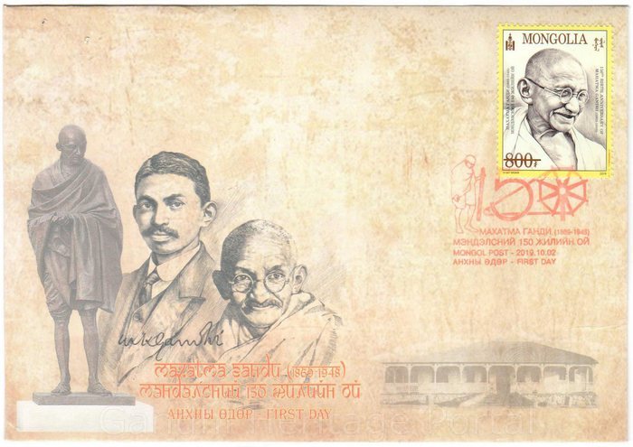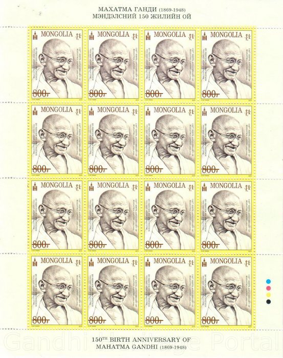 • 800r, Collection of Stamps of Gandhi on 150th Birth Anniversary of Mahatma Gandhi(1869-1948) by Mongolia