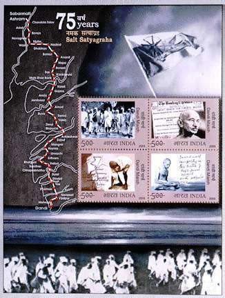 • Rs. 5/Rs. 5/Rs.5/Rs. 5 Stamps of Gandhi on 75 Years , Salt Satyagrah by India-(2005)