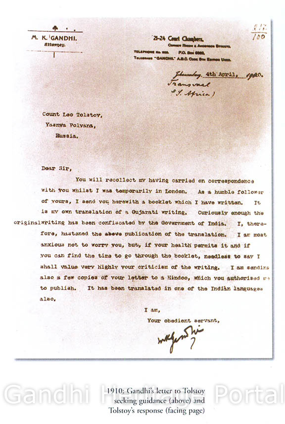 • Another letter by Gandhi to Tolstoy, dated Johanessburg, 1910