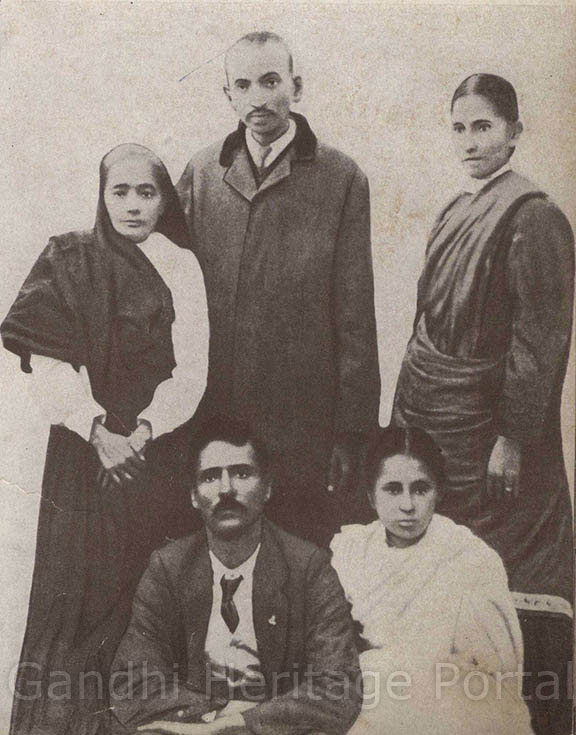 • Gandhiji and Kasturba with P. K. Naidoo and his Family in South Africa, 1912