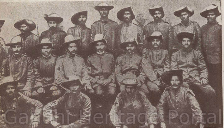 • Gandhi as a leader of the Indian Streacher-bearer Corps during the Zulu \"Rebellion\", 1906