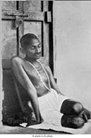 • Gandhi shaving without a mirror, Sabarmati Ashram, 1921
