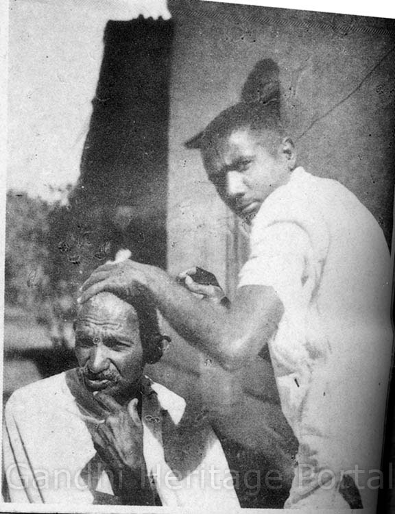 • Abbasbhai Khushalbhai Varteji cutting Bapu‘s hair