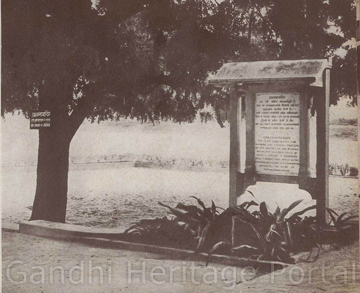 • The spot where Mahatmaji sat for the prayers at Hridaya Kunj; morning and evening prayers are regularly held here to this day