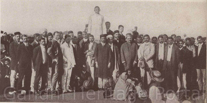 • Gandhi with his ashram workers, 1929