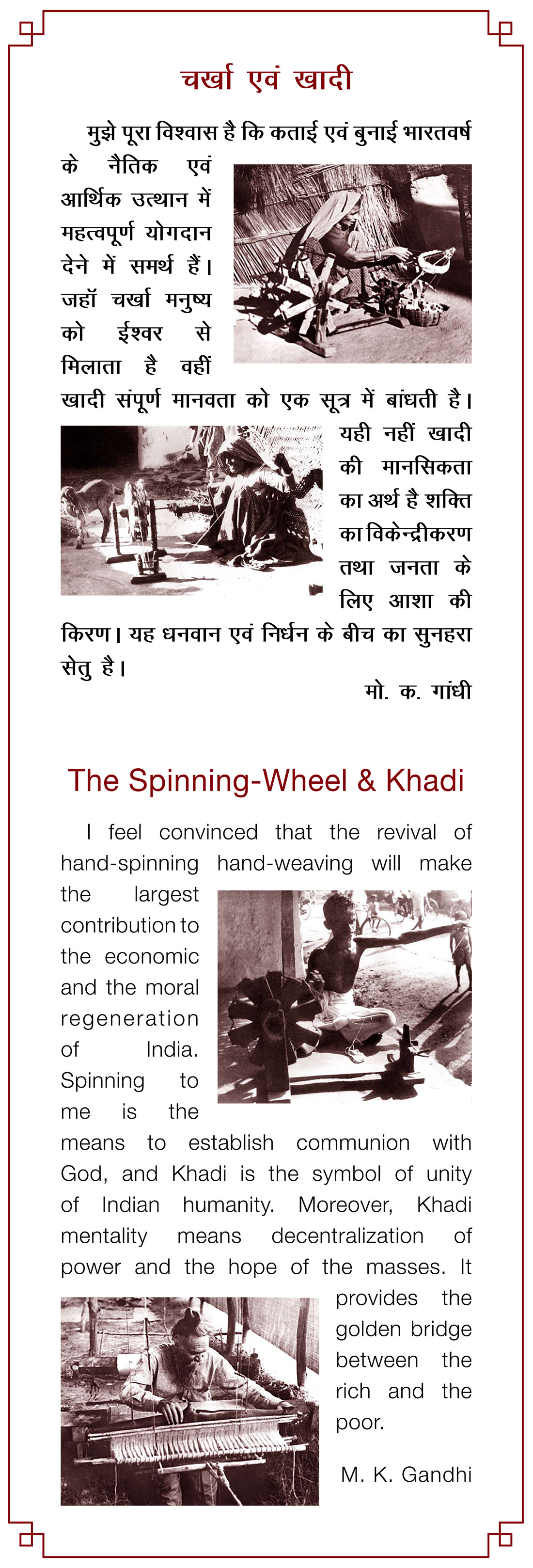 يحتوي المعرض على تمثيل مرئي لحياة غاندي الإنسان في وسائط إعلامية مختلفة. وبالإضافة إلى ذلك، فالمعرض يحتوي على ملفات صوتية لخطاباته المتوفرة لدى محفوظات صندوق سابارماتي أشرم التذكاري للمحافظة على التراث.