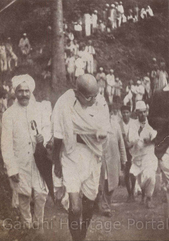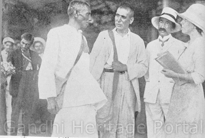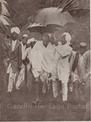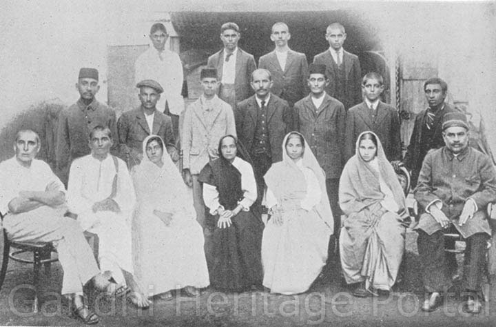 • Kallenbach, Gandhi, Mrs. Gandhi and Parsee Rustomji along with the other satyagrahis, 1914