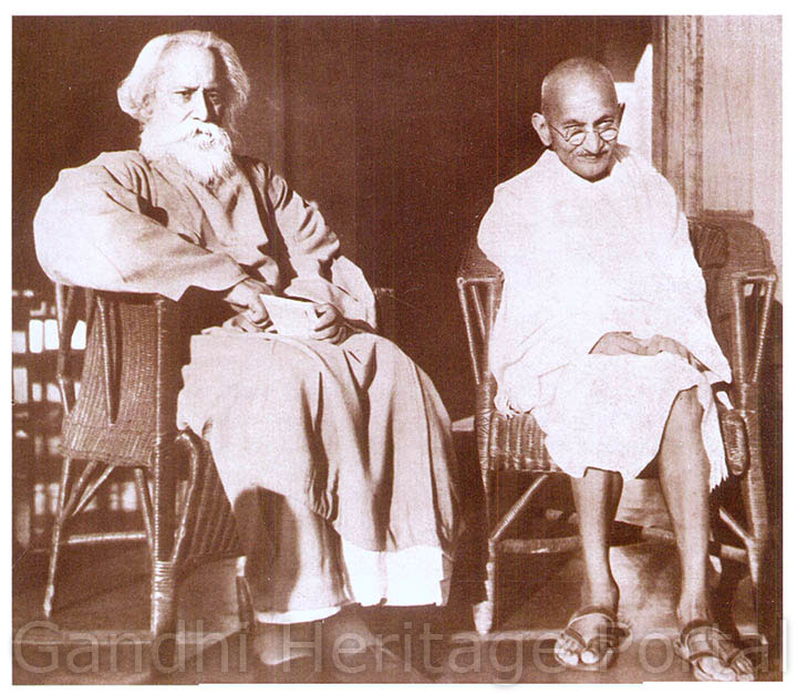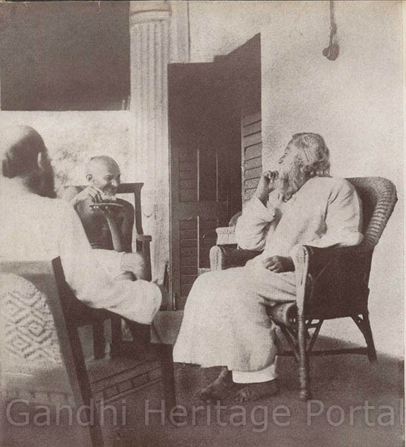 • Gandhi at Santiniketan, with Tagore and Andrews, May 29, 1925