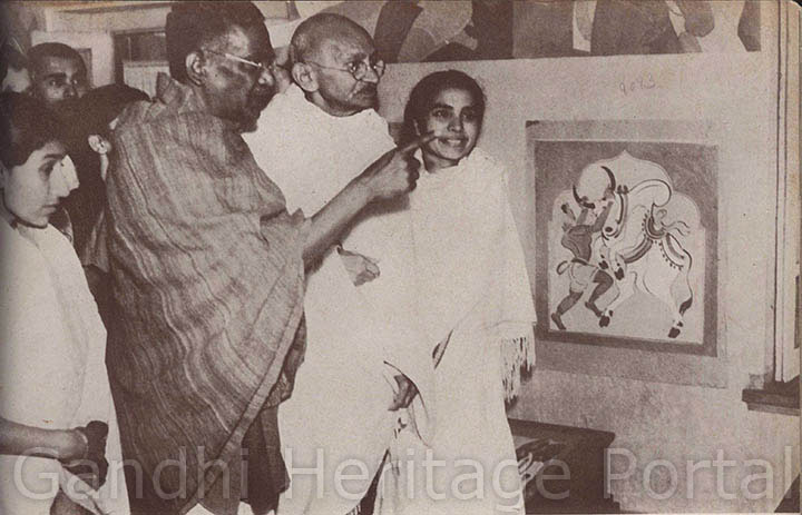 • Gandhi with Nandalal Bose at Kalabhawan, Santiniketan, December 19, 1945