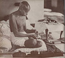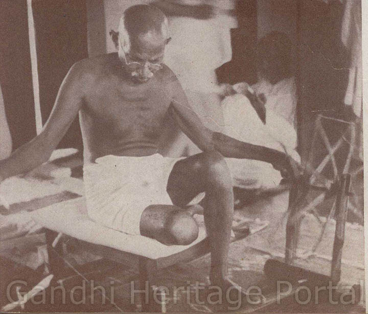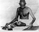 • Prayer meeting at the Sabarmati Ashram on the birthday of Gandhiji : Boys and girls from Ahmedabad Taking Part in spinning