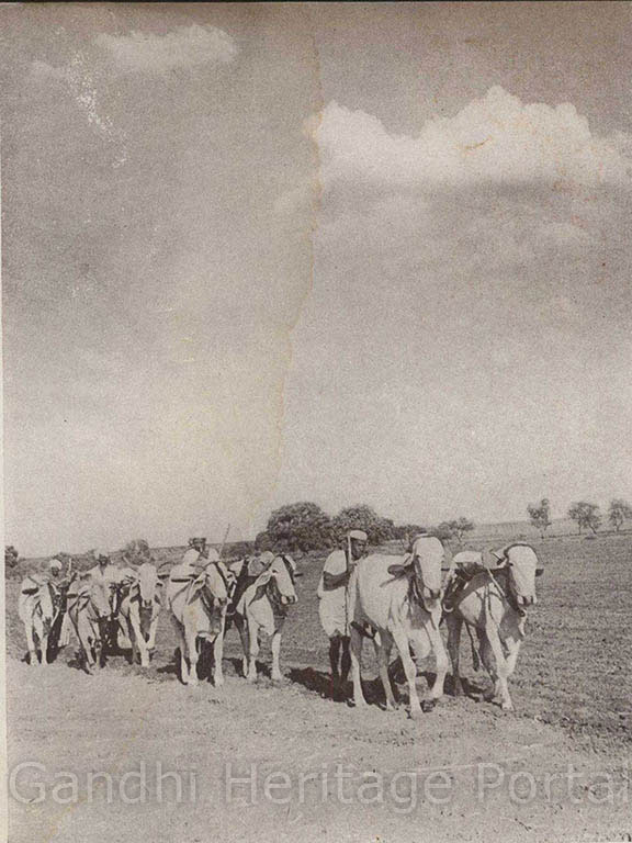 • The cotton fields of Pipri; cotton needed for spinning at the Ashram is grown here