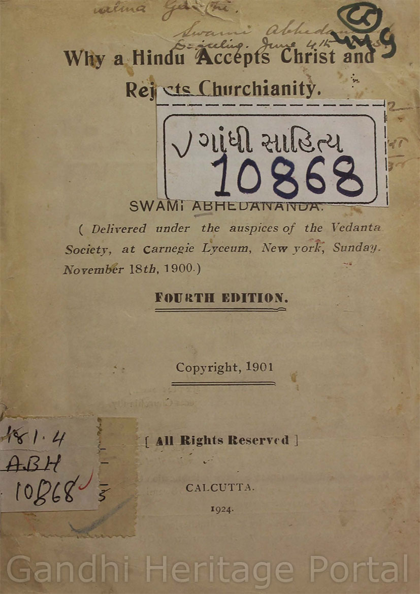 Why A Hindu Accepts Christ and Rejects Churchianity : (Delivered under the auspices of the Vedanta Society, at Carnegie Lyceum, Newyork, Sunday. November 18th, 1900)