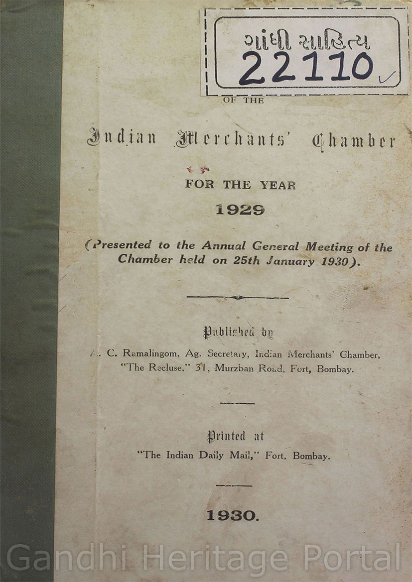 Annual Report of the Indian Merchants' Chamber for the Year 1929