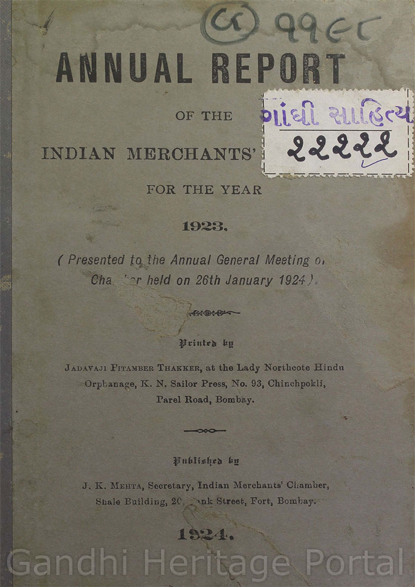 Annual Report of the Indian Merchants' Chamber for the Year 1923 : (Presented to the Annual General Meeting of the Chamber held on 26th January 1924)
