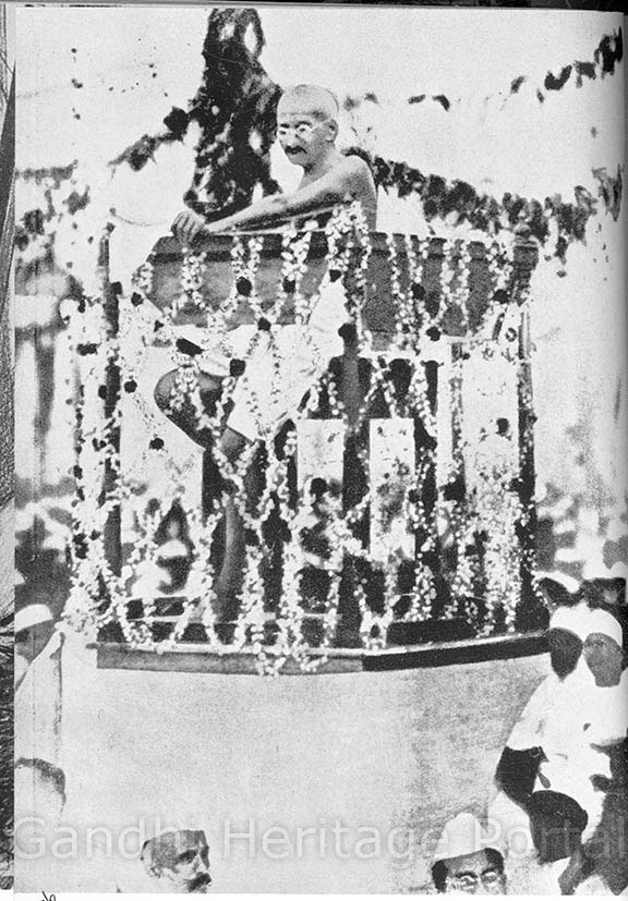 • Gandhi moving the main resolution at the Ahmedabad Congress, 1921