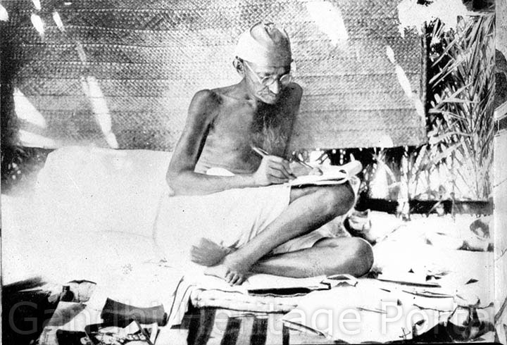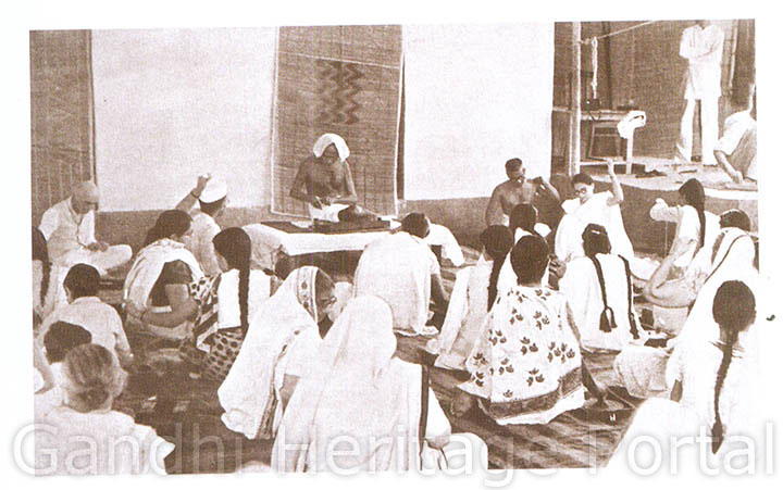 • Taking part in mass spinning at the Bhangi Colony, New Delhi, 1946