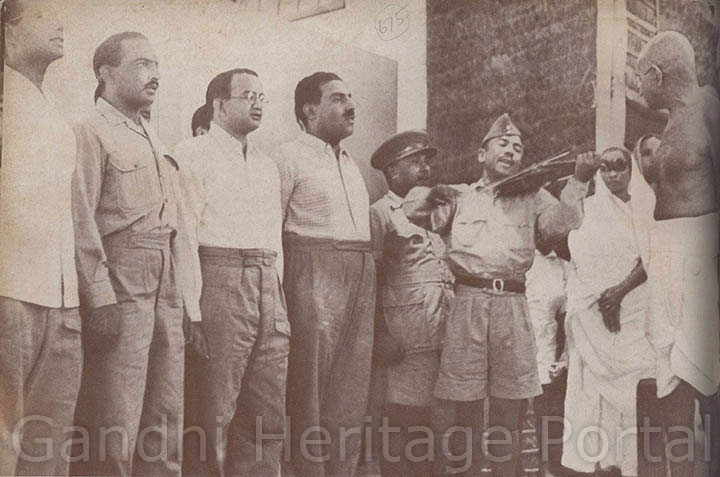 • With the I. N. A. Officers at the Bhangi Colony, Delhi, April, 1946
