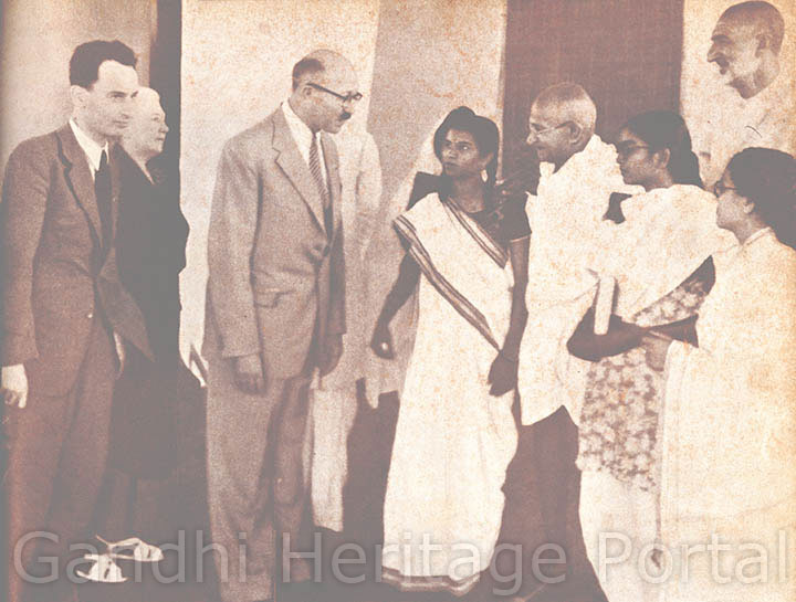 • Receiving some foreign visitors at the Bhangi Colony, New Delhi, April 1947