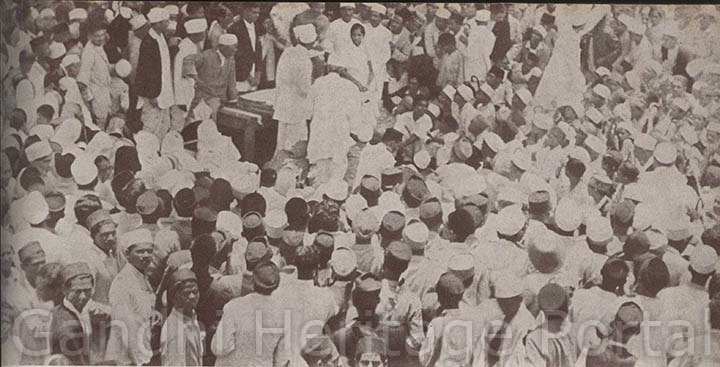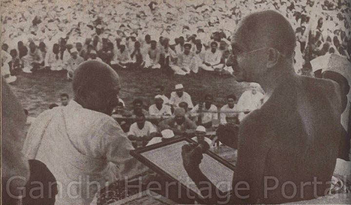 • At a meeting in Bulsar, near Ahmedabad, during his tour for Harijan uplift, 1934