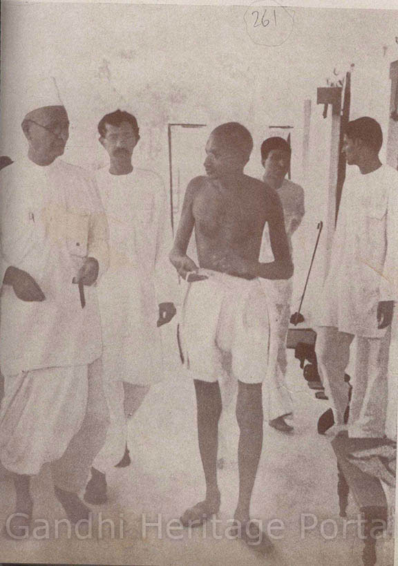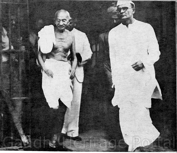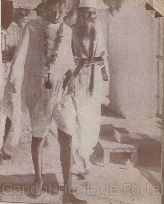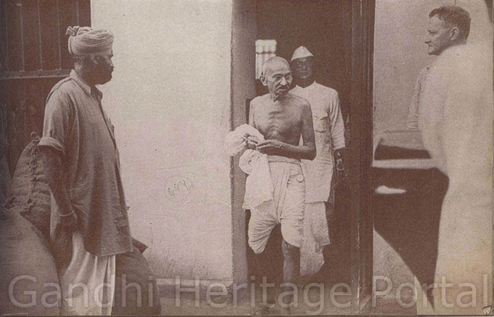 • Gandhiji and Mahadev Desai leaving the Delhi Jail after an interview with detenues