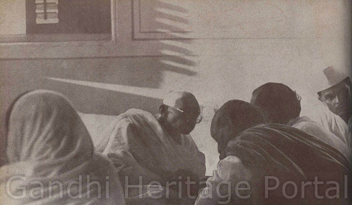 • Conferring with Sardar Patel and other Congress leaders after his release from prison, 1931