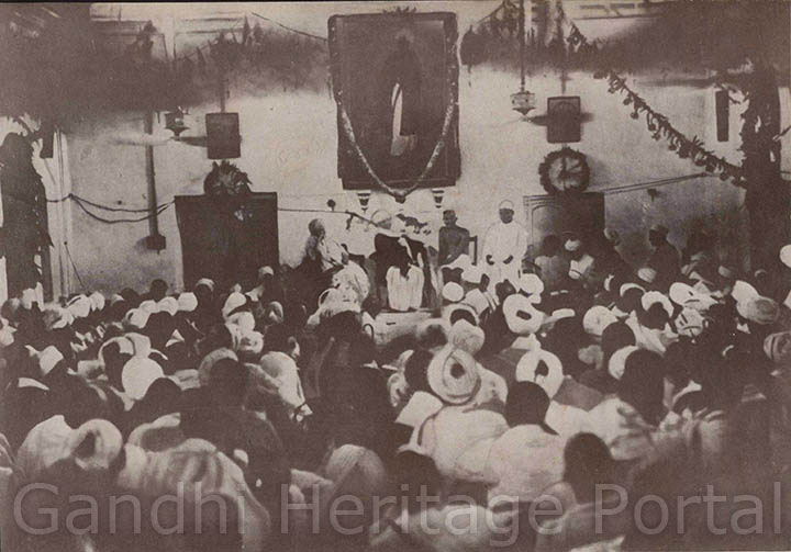• At the unveiling of the portrait of Kasturi Ranga Iyengar, Madras, 1921