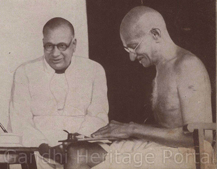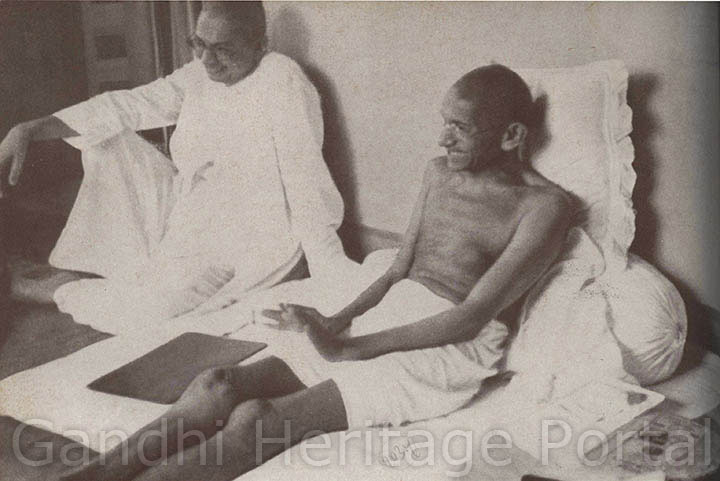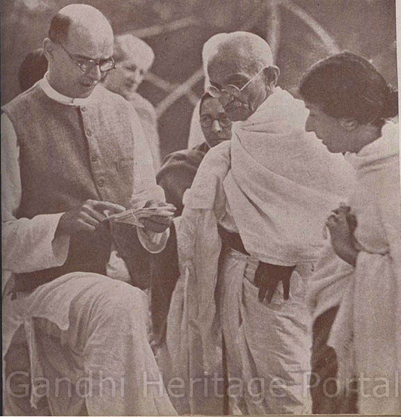• Mahadev Desai reading the Viceroy‘s letter to Gandhi, April 7, 1939