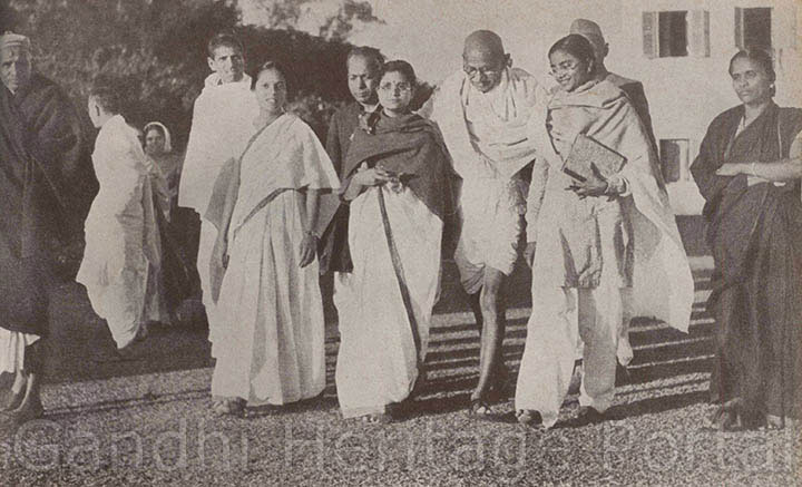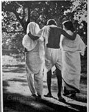 • Walking to a prayer meeting at Birla House, January 29, 1948; one of the last photographs of Mahatmaji