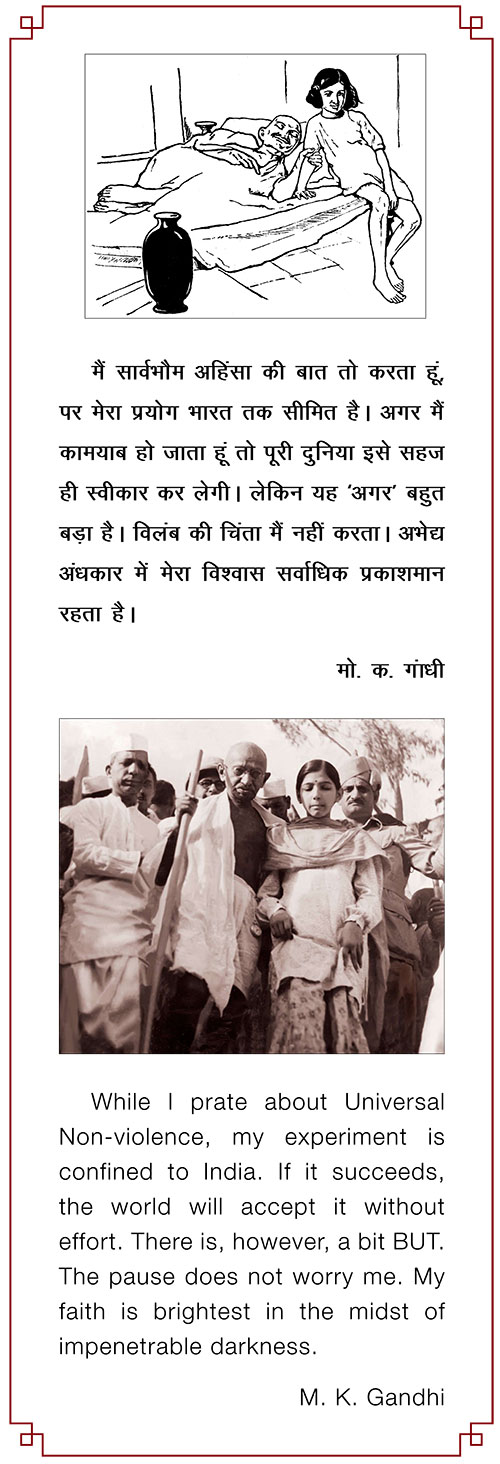 Graphic representations of Gandhiji in various media are presented here. The selection provides a glimpse of the inspirational figure that he has been for all those aspiring for change.